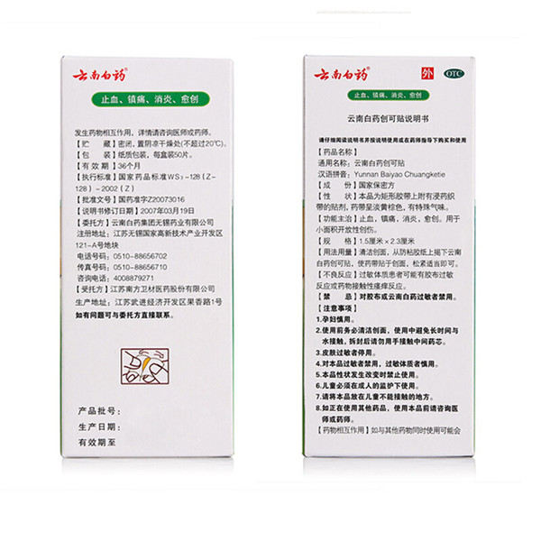 使用:清潔創(chuàng)面,從防沾膠紙上揭下云南白藥創(chuàng)可貼,使藥帶貼于創(chuàng)面,松緊適當(dāng)即可